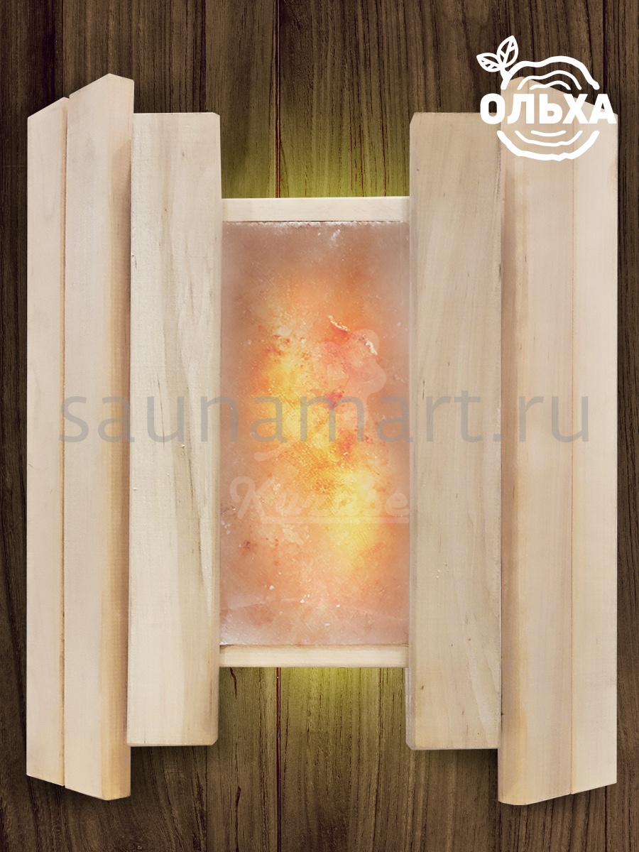 Натуральные материалы, интересный дизайн, приятная фактура древесины и уникальный природный рисунок соли –  сделают абажур главным элементом декора бани, создающим неповторимую атмосферу. Для изготовления абажура используется древесина ольхи премиального качества, а так же декоративная вставка из 100% натуральной гималайской розовой соли, создающая приятный теплый свет. Абажур поможет организовать грамотное освещение:  даст мягкий рассеяный свет непосредственно в парной или комнате для отдыха.  Абажур для светильника оснащен угловым креплением, легко устанавливается на стену и делает освещение в помещении сауны ещё более атмосферным и расслабляющим. При нагревании, вставка в абажуре из гималайской соли ионизирует воздух, что дает оздоровительный эффект, улучшает иммунитет и благотворно влияет на воздух в помещении. Размер изделия: 34,5х30,5х9 см, размер вставки из гималайской розовой соли 19,5х10х2,5 см.