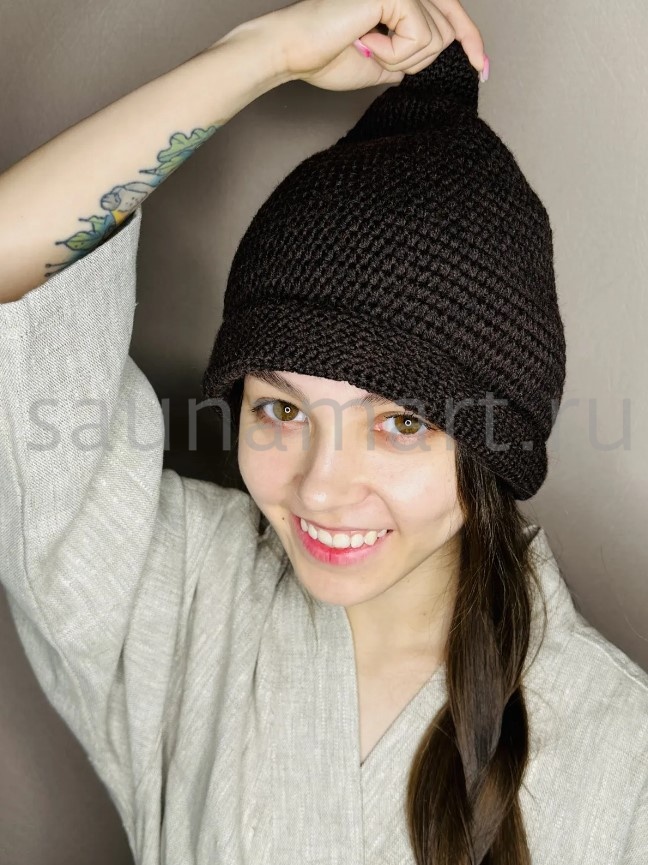 Банная Шапка Шоколад. коллекция АРТ Натюрель. цвет чёрный. состав 30% лён. 70% тонкорунная шерсть