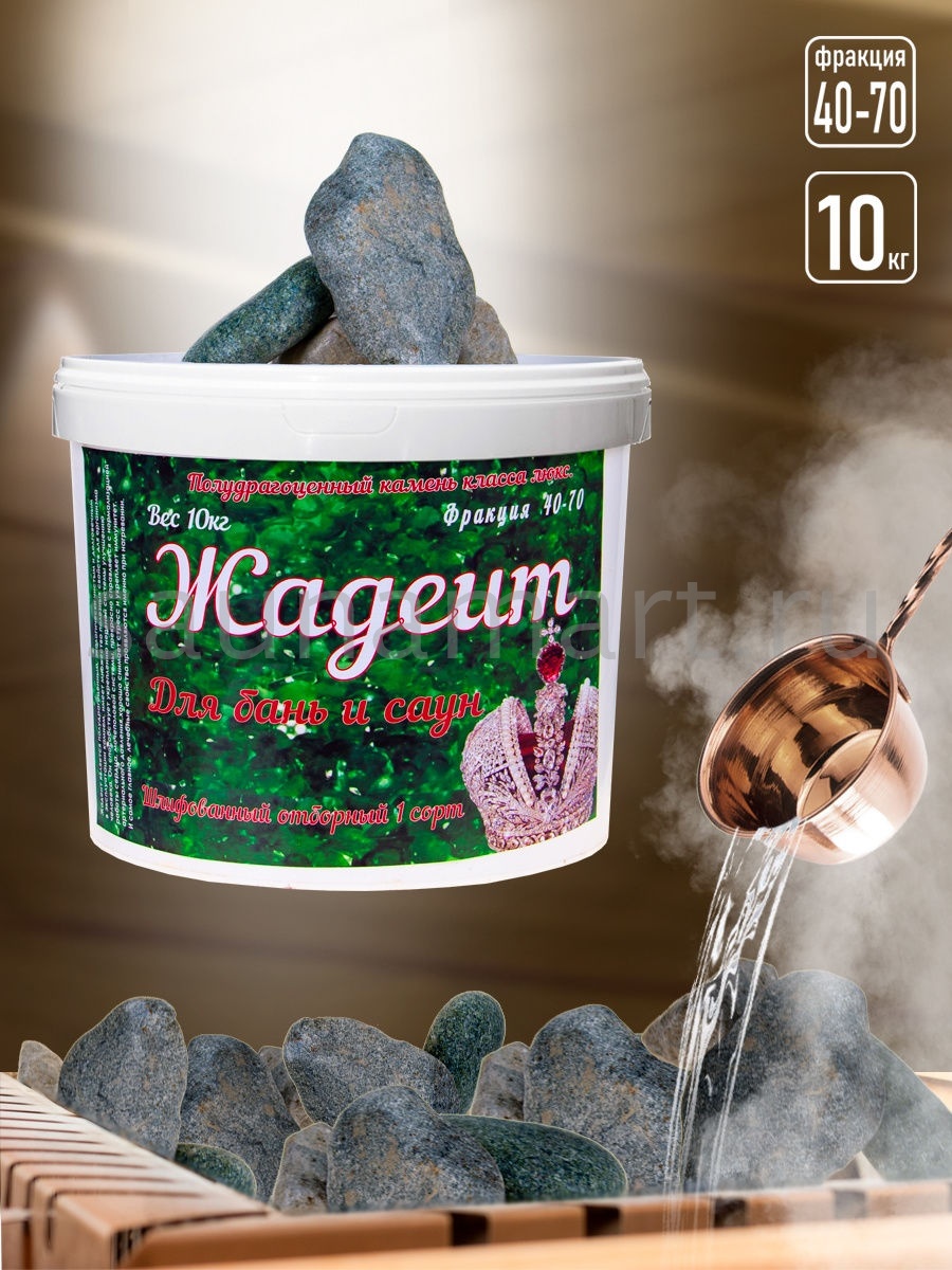 Благодаря своей плотной структуре, жадеитовые камни отличаются длительным сроком службы. Колотые камни прекрасно подходят для заполнения резервуара печи в сауне. Шероховатая поверхность камней гарантирует более активное парообразование.