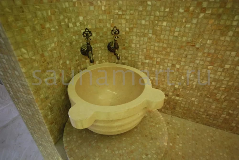 Традиционно, турецкая баня отличается роскошным убранством. Точёные элементы её интерьера не только красивы, но и функциональны. Курна служит для омовения после банных процедур. Модель Камнирус КМ01  изготовлена из натурального мрамора и не имеет слива. Благодаря этому, курна приобретает античный шарм. Вода наполняет чашу и мягко переливается через край, создавая красивую картину. Мрамор устойчив в условиях повышенной влажности, а это значит, что курна сохранит свой первозданный вид долгое время. Приобретение курны КМ01 поможет Вам дополнить традиционную обстановку хамама.