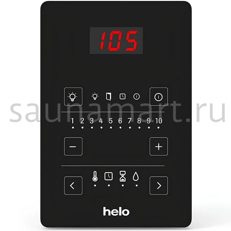 Пульт управления Helo Pure — это чистая, возведенная в степень функциональность. Он предназначен для тех, кто ищет простую и удобную контрольную панель для сауны, без лишних наворотов. С помощью этого пульта можно управлять влажностью, температурой, освещением, вентиляцией и таймером. Причем таймеров два: один задает время сеанса, а другой позволяет установить время отложенного старта печи. Настройка любого из этих параметров занимает всего несколько секунд, а интерфейс контрольной панели настолько интуитивен, что делает инструкцию практически ненужной.