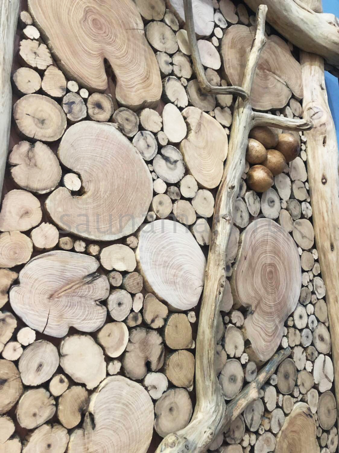 Панно из спилов ветвей можжевельника. Прекрасно впишется в интерьер любой сауны. Хороший вариант в качестве подарка. Приятный аромат и антисептирующие свойства древесины.