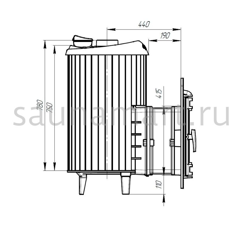 Практичная и компактная модель. Ламели по периметру внешней каменки не только обладают хорошими теплонакопительными свойствами, но и придают печи оригинальный внешний вид.