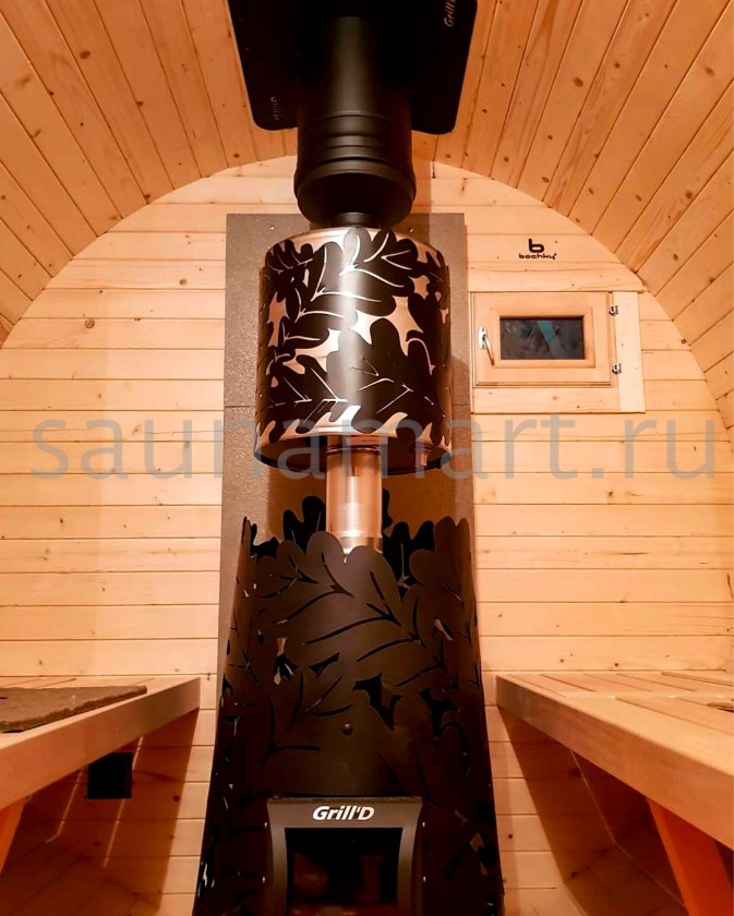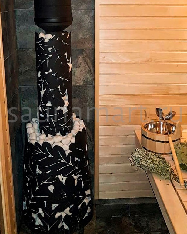 Несмотря на свои небольшие габариты, печь эффективно прогревает помещение и нагревает камни до рабочей температуры 250-300 градусов Цельсия.
