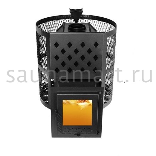 Печь дровяная Пегас Тундра-14 со стеклом сетчатый кожух Закрытая каменка