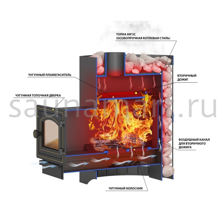 Печи для бани «Везувий» имеют несколько основных элементов: