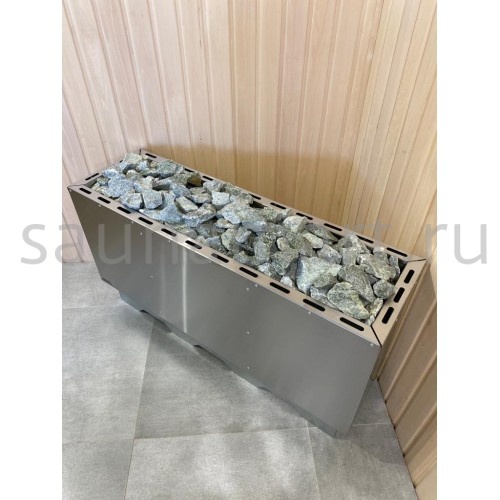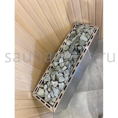 • Конструкция корпуса из двойной стенки с высокой загрузкой камня, что позволяет согреваться от камня, получая мягкое тепло.