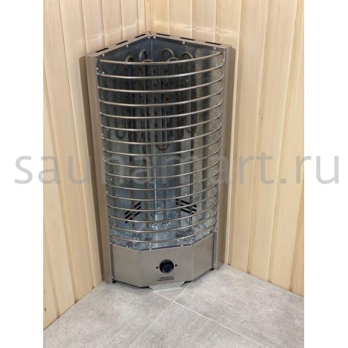 Электрическая печь ЭКМ 9 кВт "Олимпия Плюс" — угловая печь из нержавеющей стали с встроенным пультом управления, предназначенная для использования в банных помещениях. Производится в России (г. Челябинск) и обеспечивает эффективное теплоотдачу и комфорт в парилке.