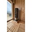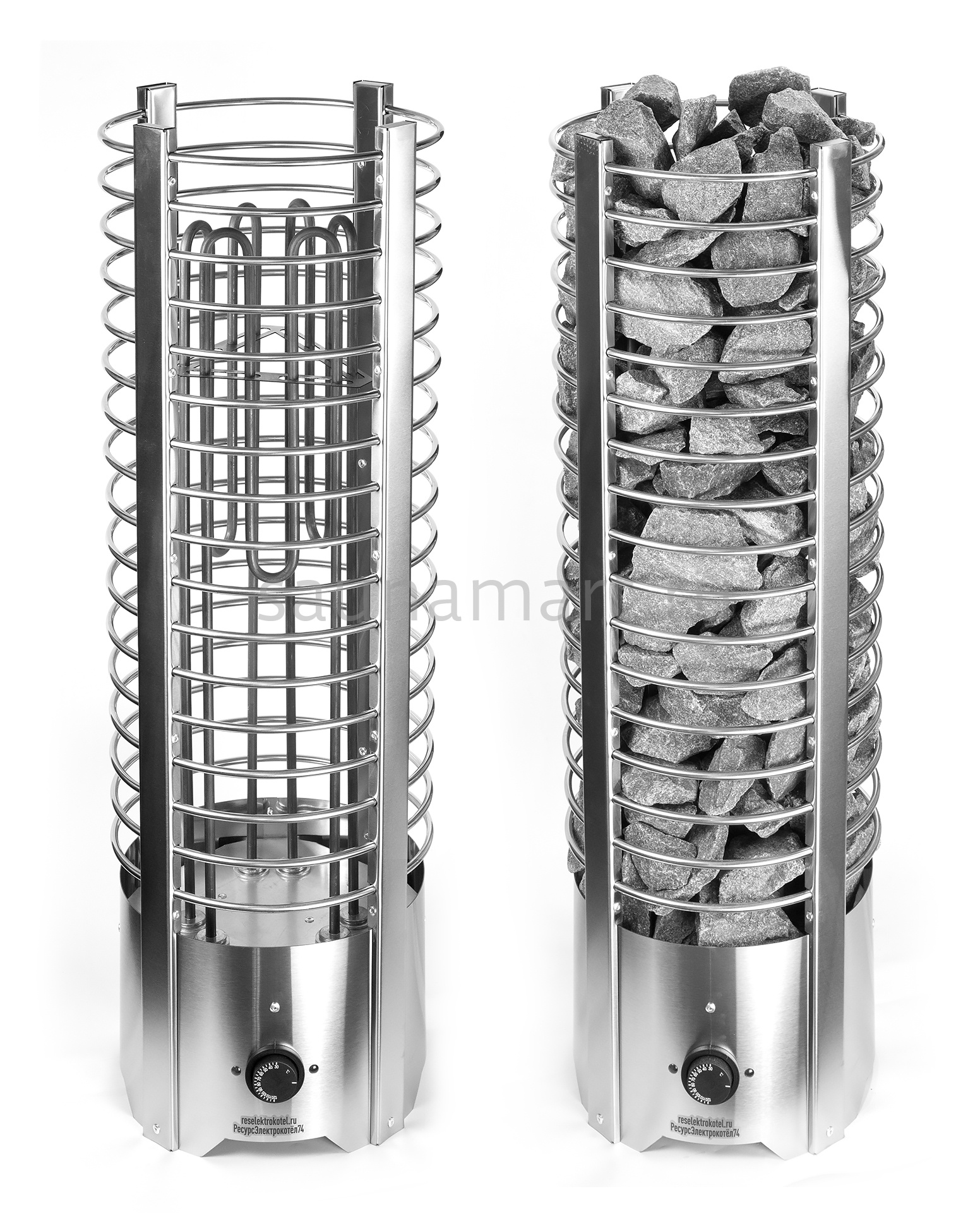 Печь комплектуется выносным пультом управления с 5-метровым кабелем. Нагревательные элементы (ТЭНы) изготовлены из нержавеющей стали AISI 304. Вариант размещения - напольный, требует монтажа на негорючее основание. Каменка открытого типа с верхней загрузкой. Имеется встроенный пароиспаритель с механическим клапаном регулировки пара. Дополнительно: защита от перегрева и система аварийного отключения.