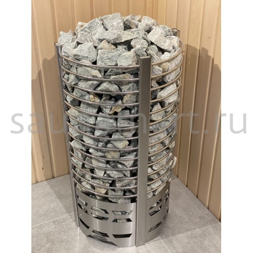 Печь оснащена встроенным механическим терморегулятором. Нагревательные элементы (ТЭНы) выполнены из нержавеющей стали. Вариант размещения - напольный, требует установки на негорючую поверхность. Каменка открытого типа с фронтальной загрузкой камней. Пароиспаритель отсутствует - пар образуется при ручном поливе камней. Комплектуется защитным экраном и термостойким кабелем.