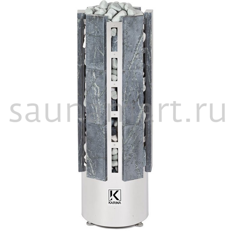 Электрокаменка Karina Forta 15 Талькохлорит предназначена для использования в парных объемом до 24 м?. Печь выполнена в напольном варианте и обладает цилиндрической формой, дополненной плитами из натурального камня Талькохлорита.