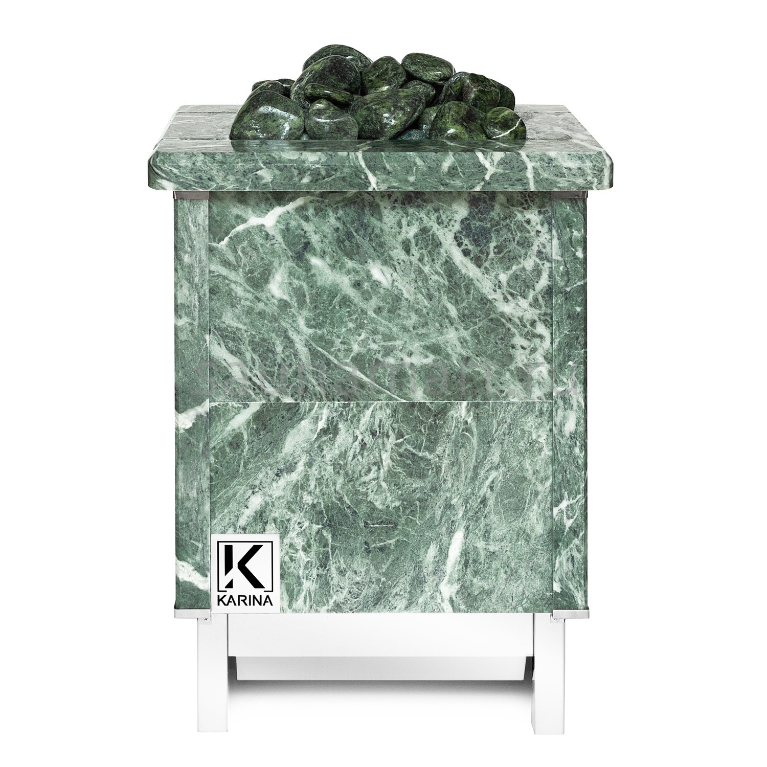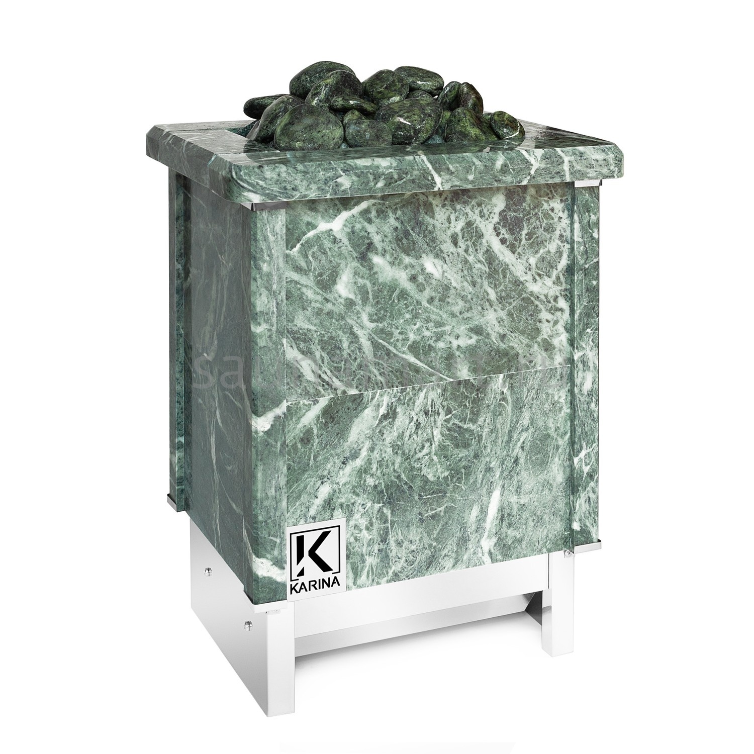 Электрическая печь KARINA Quadro 9 mini Змеевик представляет собой электрокаменку, полностью облицованную натуральным камнем, и способной прогреть семейные бани и сауны объемом до 14 м3.