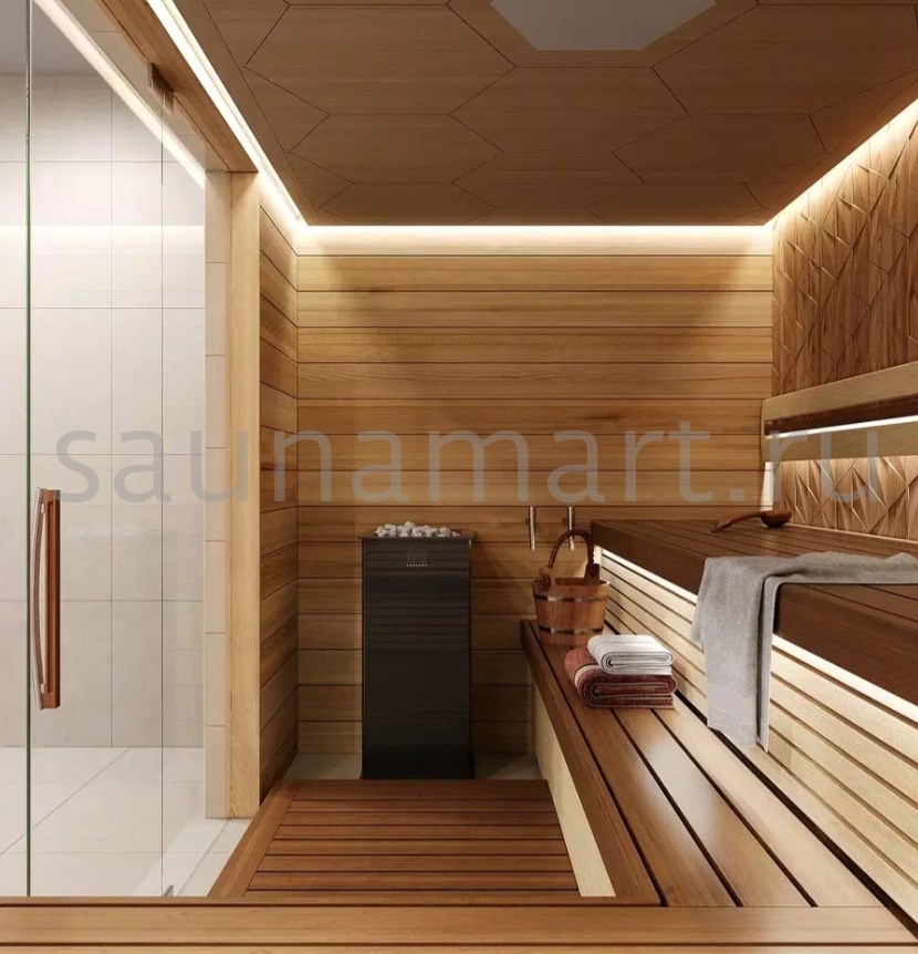 Доступны 3 режима температуры и влажности в парной: сухая сауна, русская баня, влажный режим. Печь подходит для всей семьи.