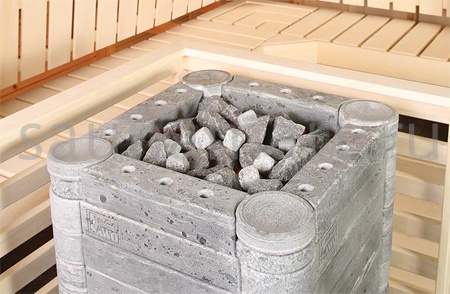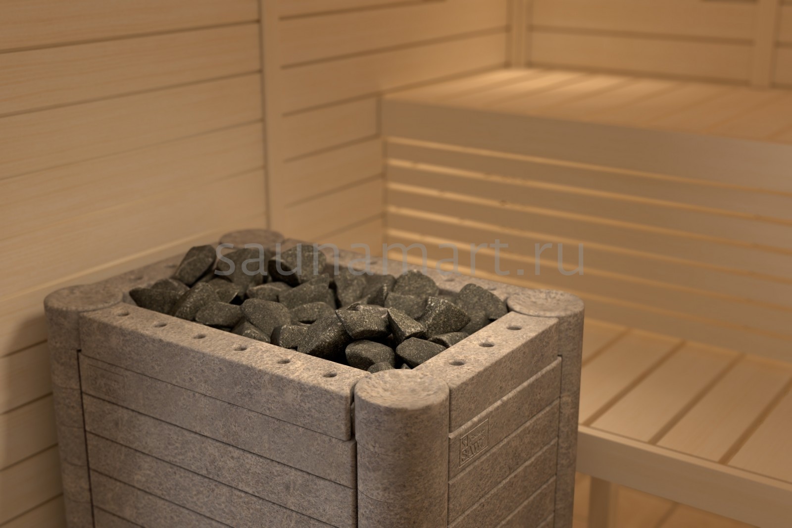 Если из всех видов банных процедур, вам более всего по нраву мягкий и лёгкий туман хамама, то вам непременно следует обратить внимание на печь с напольной установкой NIMBUS NIM-90NS-P от финской компании SAWO. Впрочем, данная модель способна удовлетворить любые предпочтения в полной мере. Внешняя облицовка из натурального камня наделяет электрокаменку SAWO NIMBUS NIM-90NS-P особым спектром преимуществ и возможностей. Благодаря каменной поверхности печь очень быстро прогревает помещение парной объёмом 8-14 метров кубических. Расход электроэнергии при этом весьма экономичен, ведь каменная облицовка длительное время сохраняет тепло. Помимо облицовки из талькохлорита в данную модель вмещается до 50 кг камней. Это делает площадь испарения поддаваемой на электрокаменку жидкости колоссальной. Вы сможете в считанные мгновения добиться требуемого уровня влажности, наполнив парную легким мелкодисперсным паром. 4 чаши для масел, расположенные по углам NIMBUS NIM-90NS-P, порадуют любителей ароматерапии. Все внутренние элементы печи выполнены из нержавеющей стали высочайшего качества. Благодаря использованию этого материала, NIMBUS NIM-90NS-P гарантированно прослужит вам долгие годы. В качестве дополнения к электрокаменке вы можете купить удобный выносной пульт с интуитивно понятным интерфейсом. Пульт размещается в предбаннике и позволяет заранее запрограммировать режим работы печи.