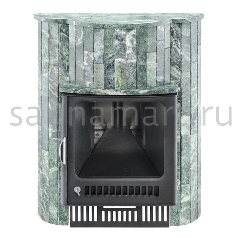 Для печи «Малютка» серии ПФ производитель V?hringer выпускает порталы из натурального мрамора, змеевика и жадеита. Облицовочные материалы поступают на завод в слэбах, заготовки разрезают на пластины, которые затем навешивают на печь.