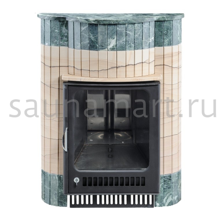 Для печи «Оптима» серии ПФ производитель V?hringer выпускает порталы из натурального мрамора, змеевика и жадеита. Облицовочные материалы поступают на завод в слэбах, заготовки разрезают на пластины, которые затем навешивают на печь.