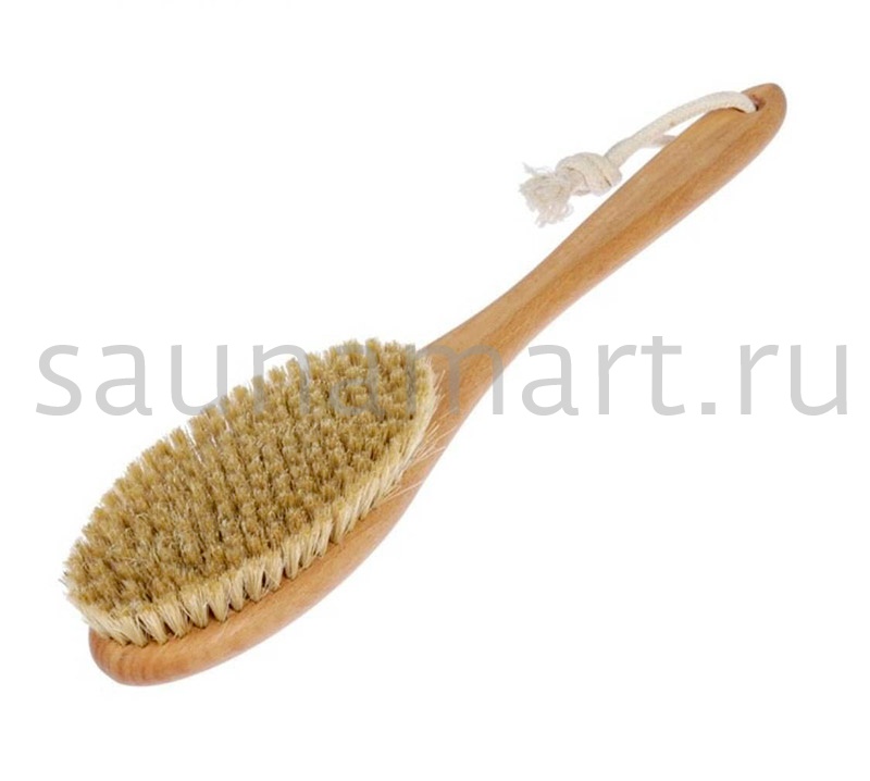 Щетка для сухого массажа и душа с удобной ручкой обеспечивает интенсивное обновление кожи и стимулирует микроциркуляцию.