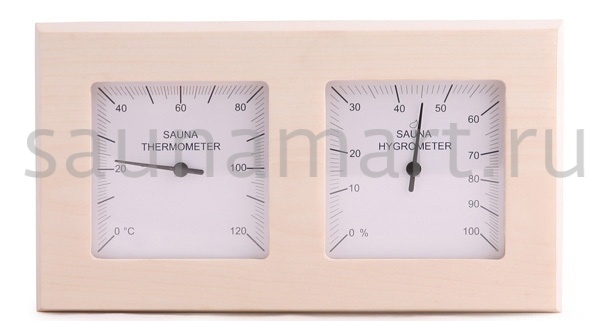 Термогигрометр SAWO 224-THA отличается надежностью, долговечностью и практичностью. Корпус прибора выполнен из осины, очень прочного материала, который не выделяет смолу и не впитывает влагу. В широкой раме из осины находятся два круглых циферблата под термостойким стеклом. Градуировка шкалы гигрометра варьируется в пределах от 0 до 100 %. Градуировка шкалы термометра варьируется в пределах от 0 до 120 градусов по Цельсию. Предусмотрена возможность калибровки прибора. Термогигрометр SAWO прекрасно впишется в интерьер любой бани или сауны и удачно дополнит интерьер. Термогигрометр Саво подойдет для использования в любом парильном помещении, как в условиях русской бани, финской сауны так и хамама. Помните, чтобы проведённое в парной время оказало благоприятный эффект на здоровье и самочувствие, необходимо тщательно соблюдать температурный режим парения и режим влажности.Высокий стандарт качества SAWO гарантирует надёжность и точность измерений термо-гигрометра.