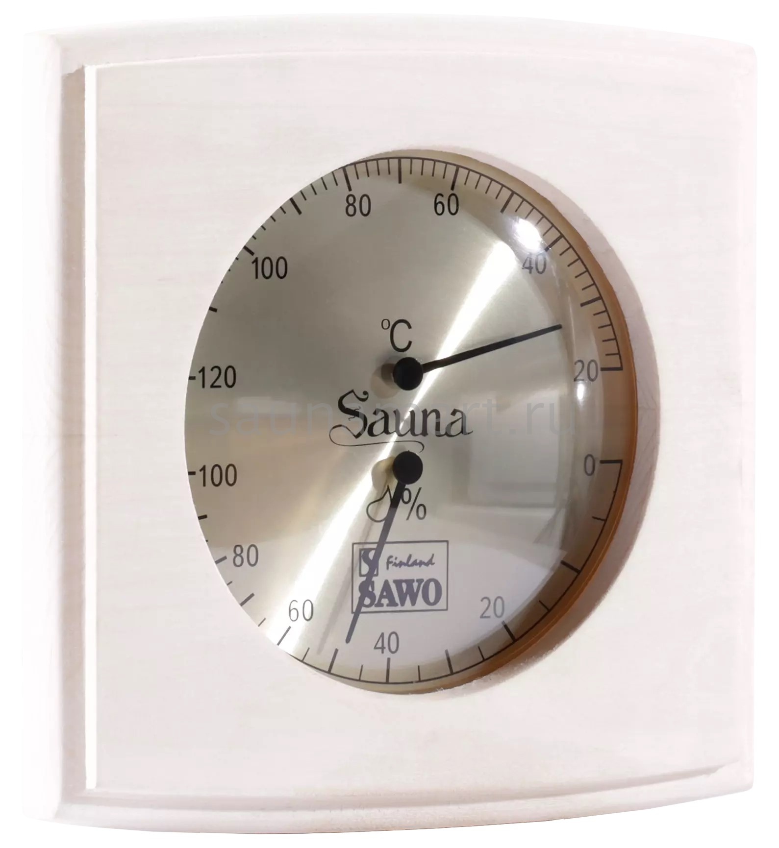 Термометр-гигрометр Sawo для саун сочетает в себе две полезные функции – измерение температуры и влажности воздуха. Вас непременно порадует качество и внешний вид прибора. Лучшим местом для установки прибора является наиболее удалённая стена относительно входа и печи. Укреплять его следует на высоте 1,5м от пола.