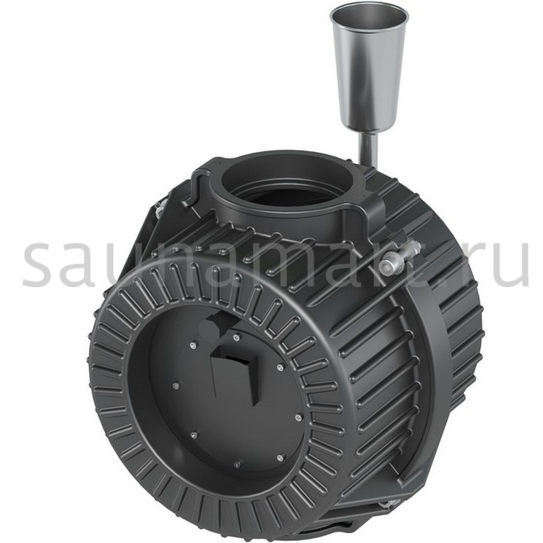 Турбопар Шторм от Везувий — натрубная каменка из чугуна, заменяющая стартовый участок дымохода. Эффективно передает тепло от дымовых газов в парную, увеличивая КПД печи. Вмещает до 20 кг камней для создания дополнительного теплового контура.