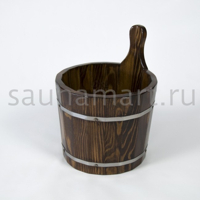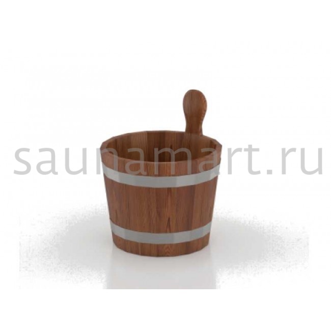 Ушат для бани из лиственницы используют для хранение воды в парной. Изготовлен из деревянных шпунтованных клёпок, надёжно соединённых между собой специальным водостойким клеем и стянутых обручами из ротанговой лианы обеспечивающим особую прочность конструкции и экзотический стильный вид.