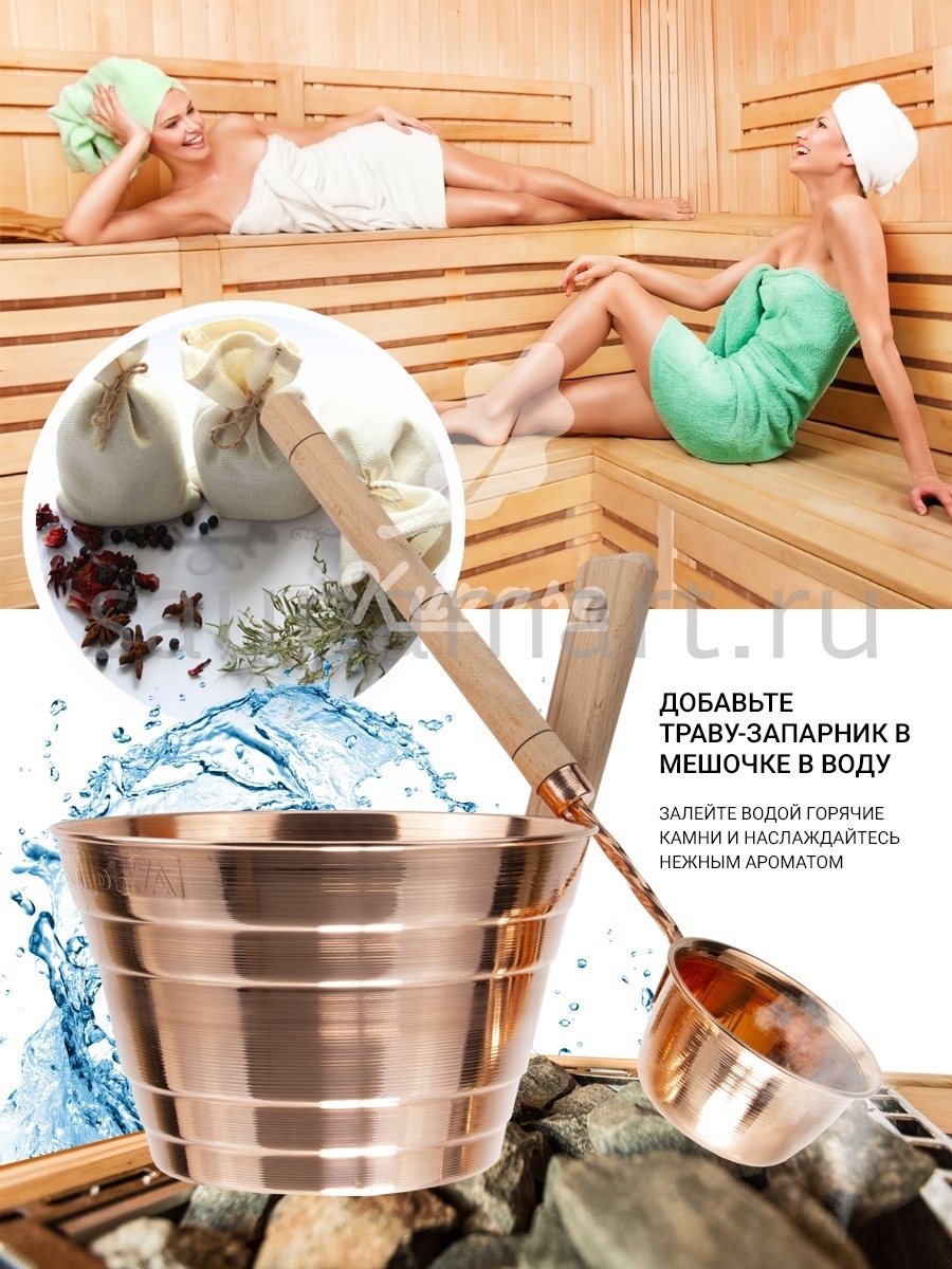 Запарник из меди обладает дезинфицирующим эффектом, что благотворно сказывается на качестве воды. Ведро для бани из меди устойчиво практически к любым внешним воздействиям. Размер ушата: диам. 21,5см, высота с ручкой 26 см, высота стенок 14 см, объем 3л. Произведено в России. По желанию, Вы можете дополнить данный ушат черпаком из меди из одной коллекции арт. 19546479 (введите номер в поисковой строке WB).